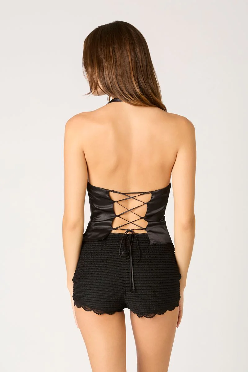 •Satin halter top