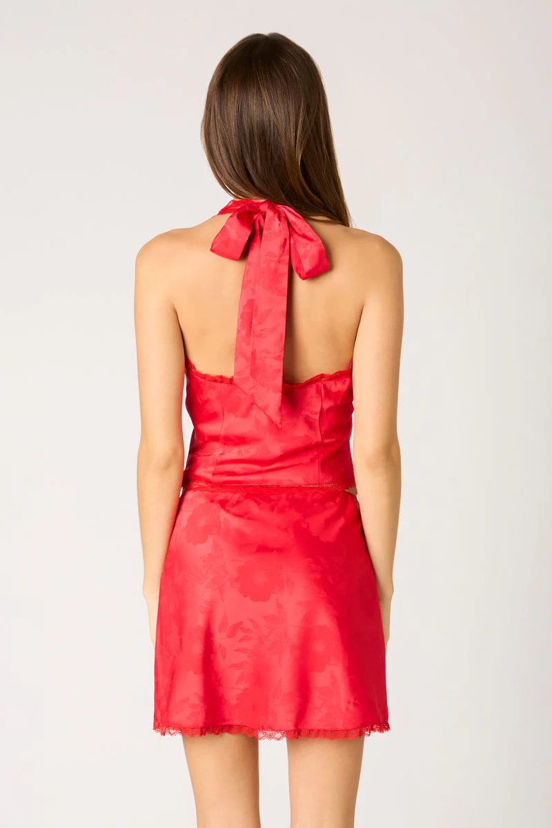 •Jacquard satin halter top