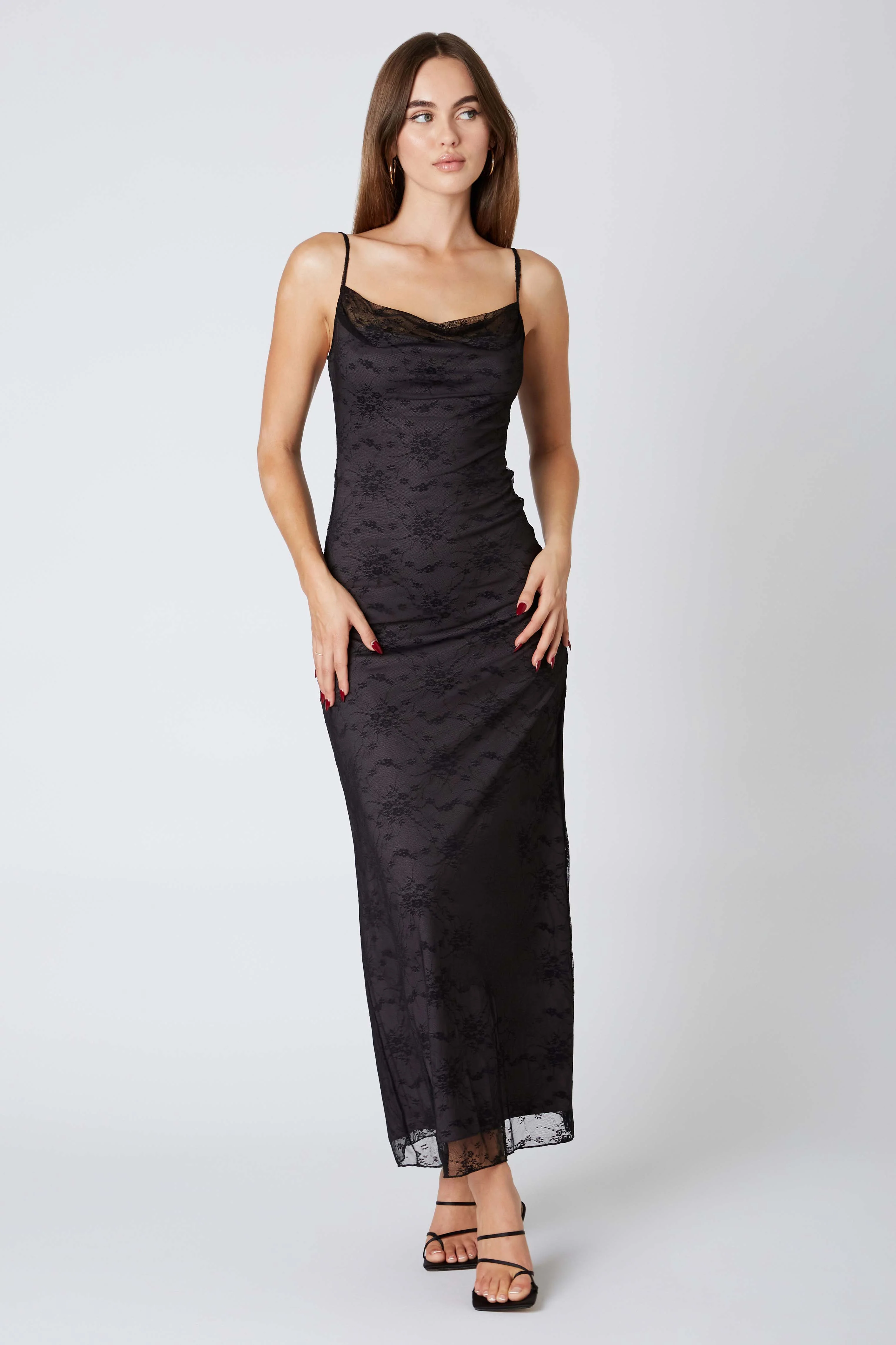 •Mesh overlay maxi dress with adjustable shoulder straps