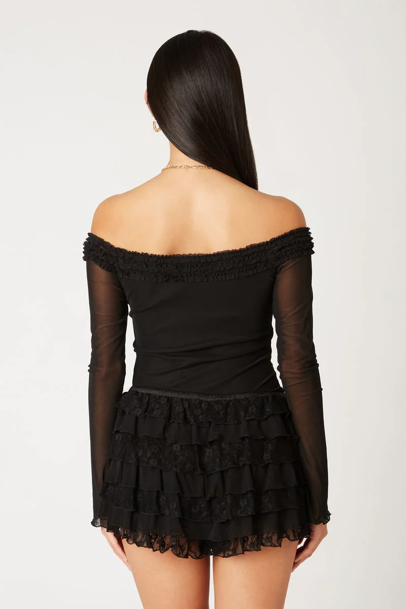 Off-The-Shoulder Ruffle Mesh Top