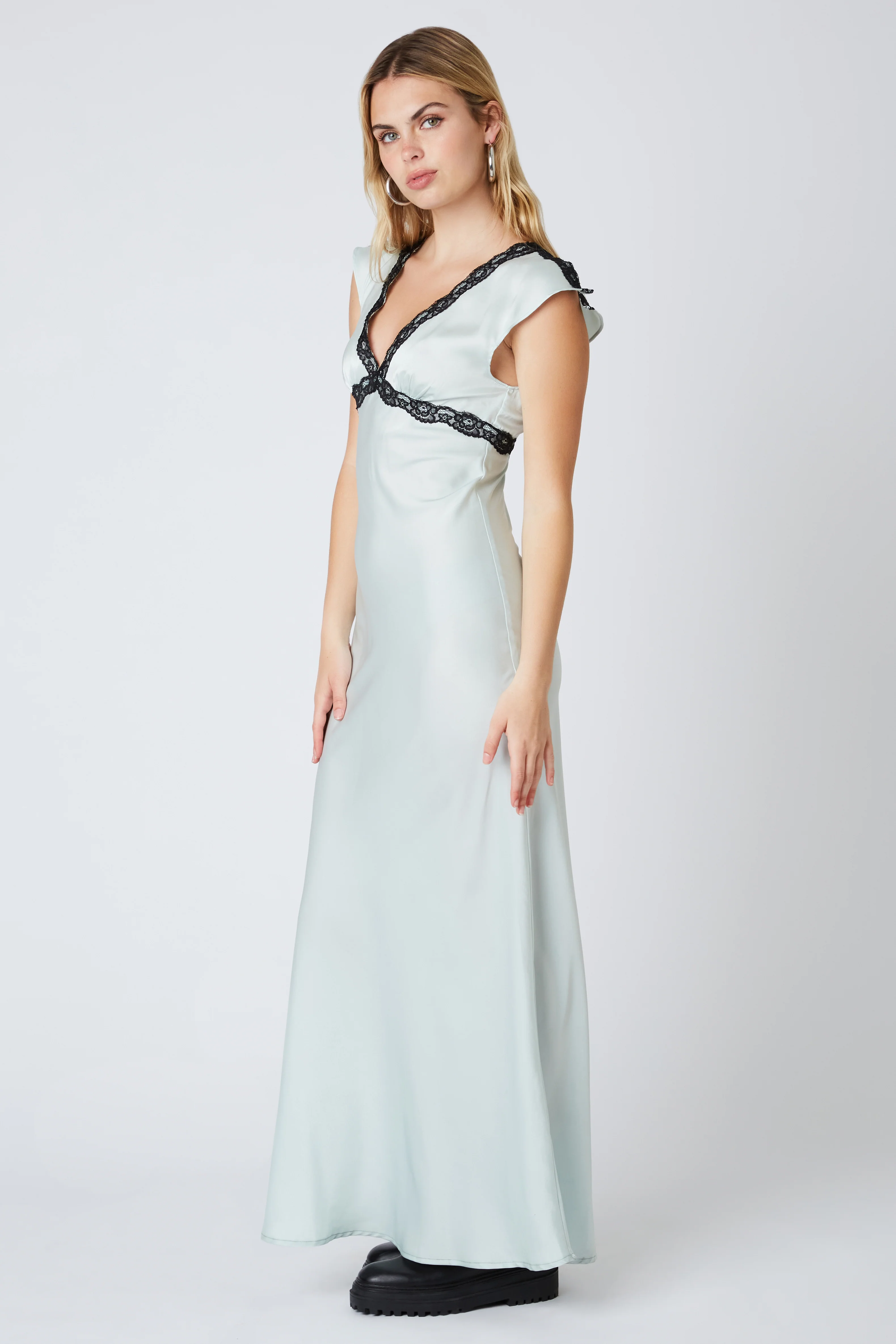 •Maxi satin bias skip dress
